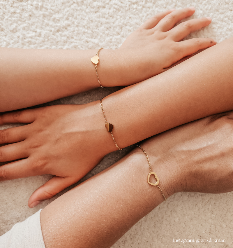 This subtle set is the perfect gift for mother and daughter. Thanks to the luxurious bracelets, the hearts of which fit together, you are always connected.