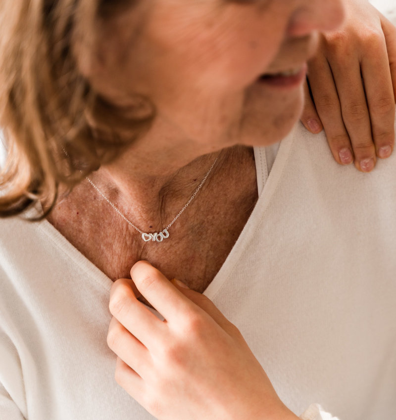 Silver necklace with two heart-shaped birth stones. The necklace is made of 925 sterling silver and has room for two names or words of your choice. The heart-shaped birthstones, complete the chain!