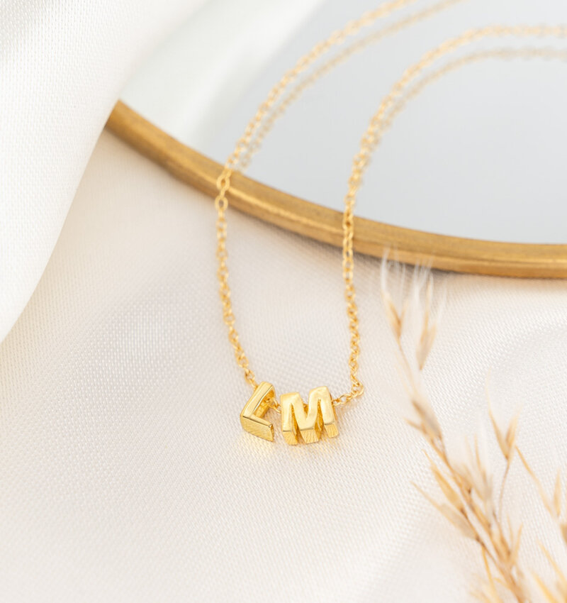 Letter Necklace with 2 initials - 925 Sterling Silver