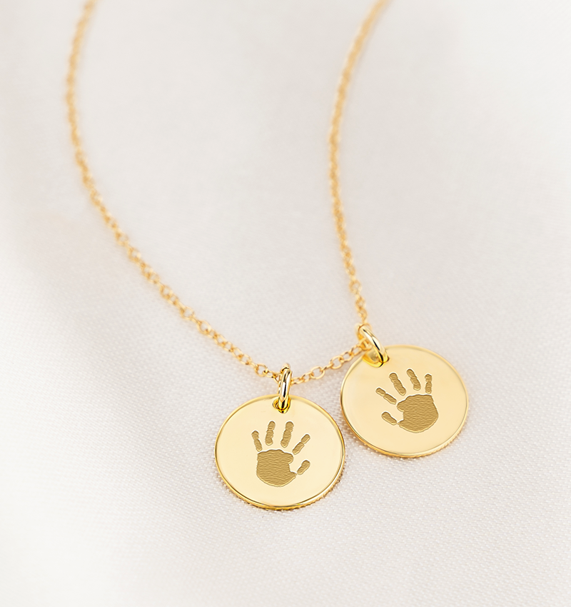 With the necklace with handprint and name charm you not only carry the unique handprint, but also the name of your little one with you at all times!