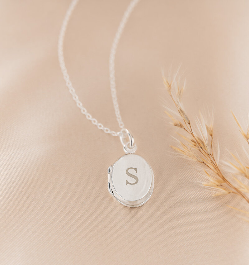 The locket necklace, adorned with the initial of her loved one, is a precious keepsake that the bride can always keep close to her heart.