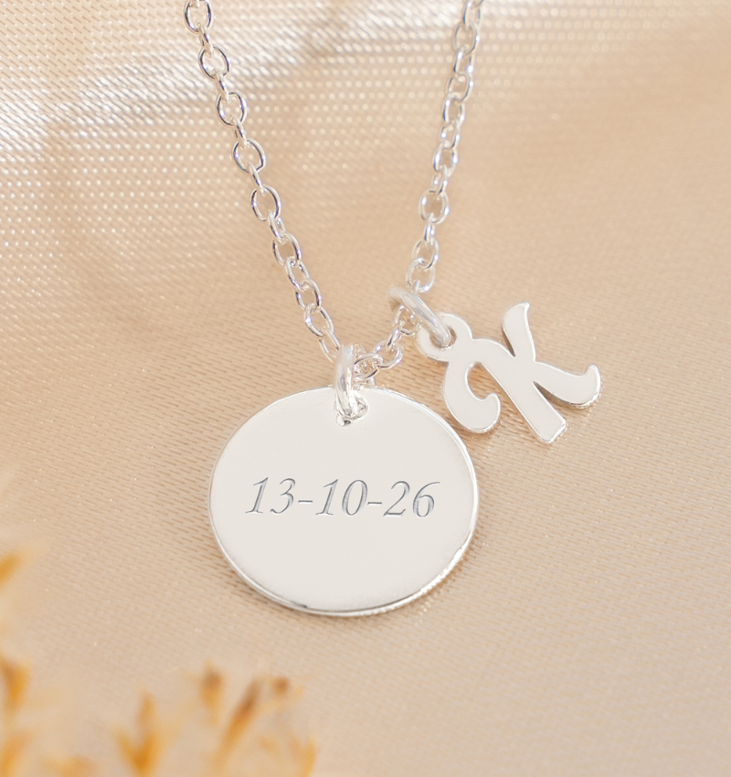 Necklace 'Beaded Disc' with Engraving - Copy - Zilver