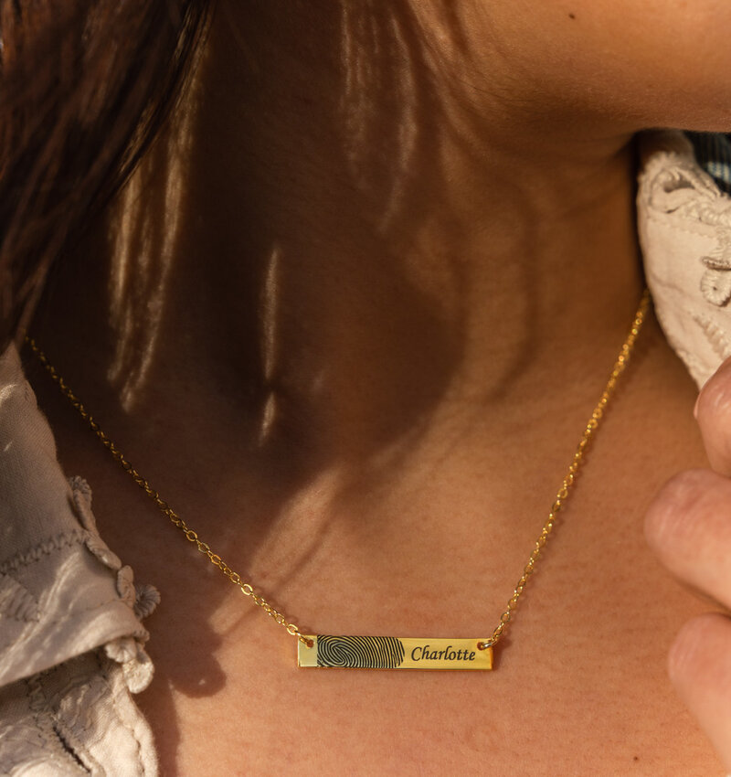 Horizontal Bar Necklace with Name and Fingerprint - Zilver