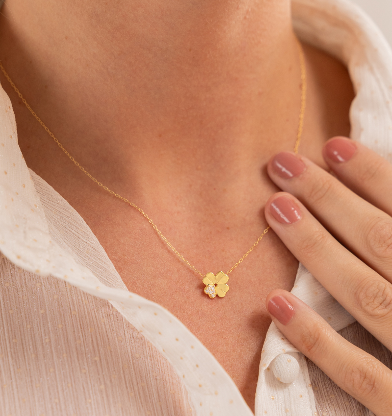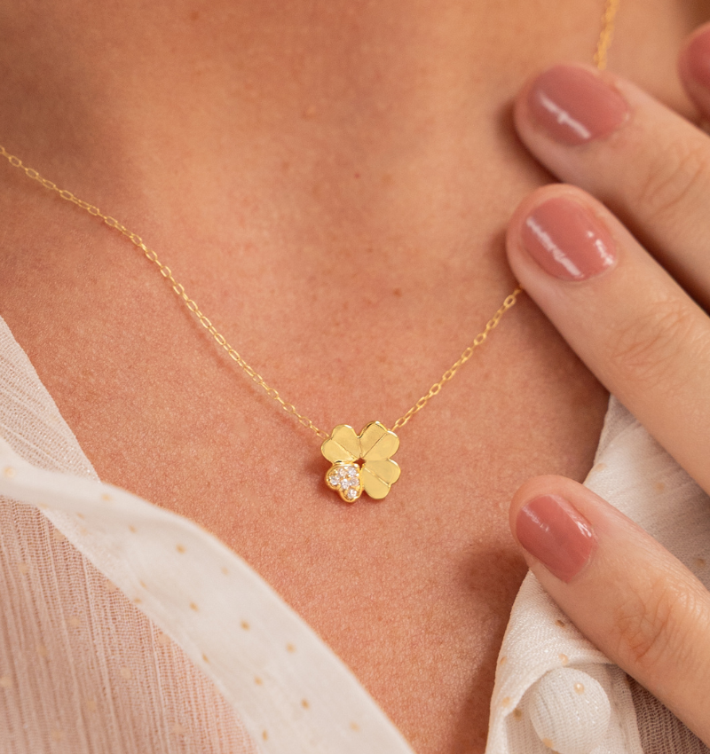 Luxury Women's Clover Necklace with Crystals | Zirconia Crystals - 925 Sterling Silver