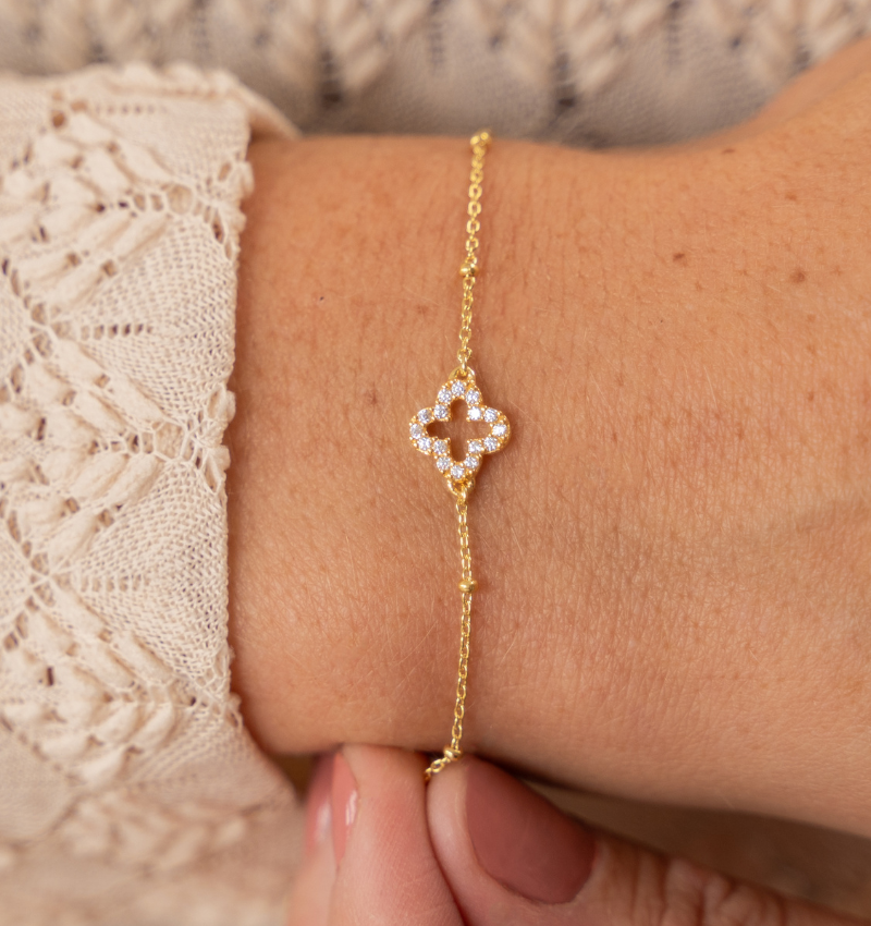 A luxurious clover bracelet with crystals that makes your luck shine every day.