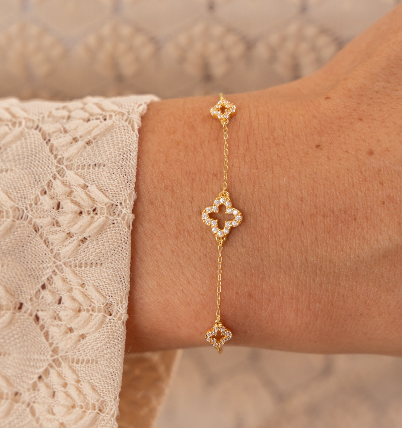 Always a lucky charm on your wrist with this luxurious crystal clover bracelet.