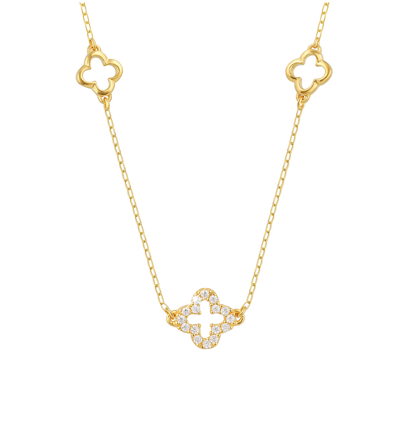 Luxury Ladies' Necklace 3 Clovers with Zirconia - Gold Plated