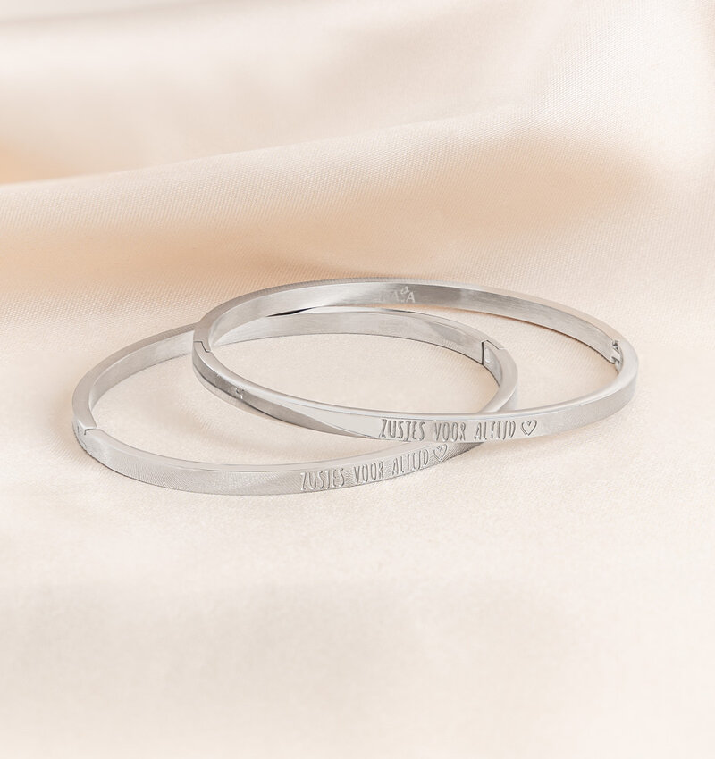 Cuff Bracelet with text ‘Sisters Forever’ - Goud