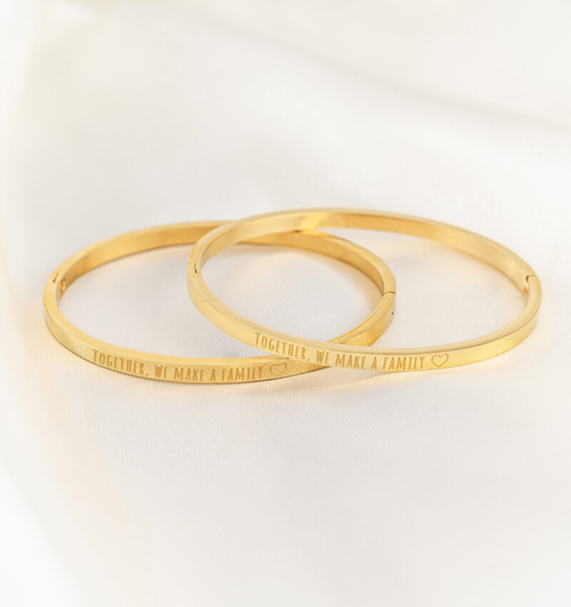 Beautiful bangles with the sweet message "Together we make a family." The perfect gift for moms, daughters, or sisters!