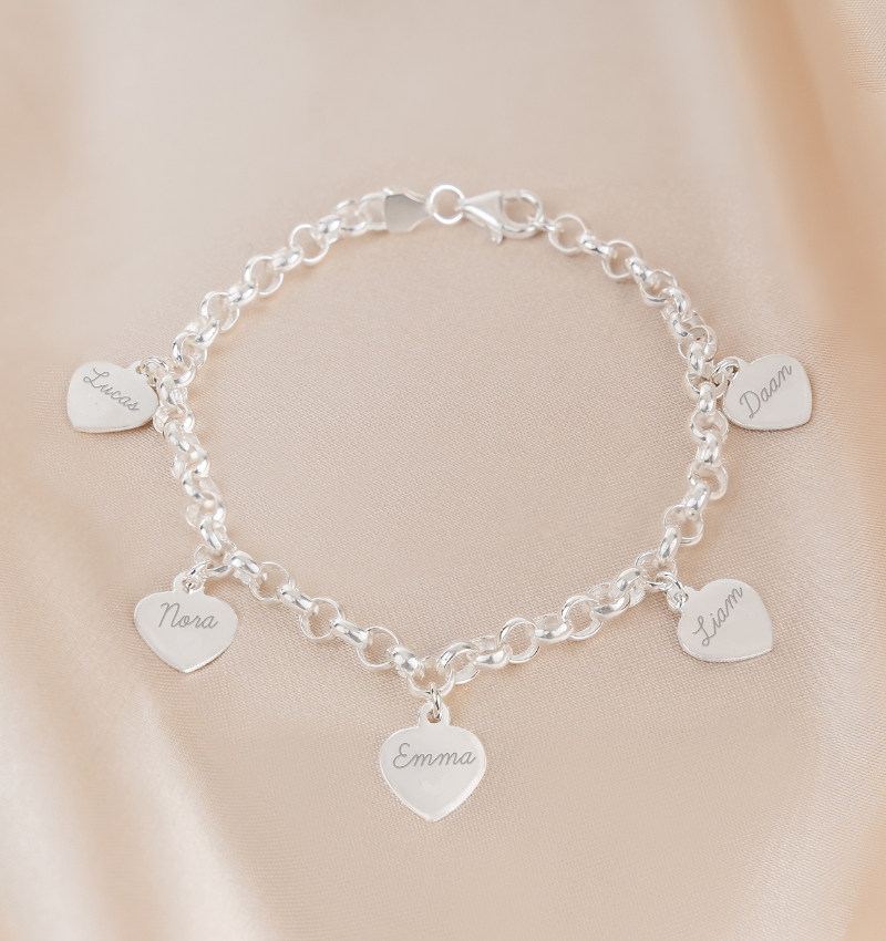 Beautiful silver bracelet with engraved heart. We engrave a name, date or word of your choice on the front and back.