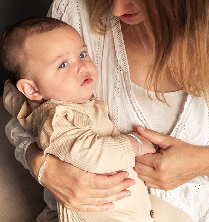 Gorgeous .925 silver bracelet when your baby's name or can engrave a special date. Hand engraved on sterling silver. You can optionally a cross or heart to let assemble the bracelet there.