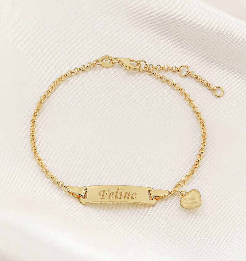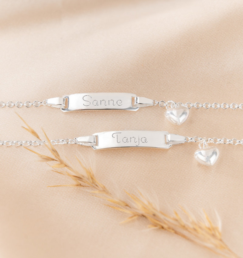 A classic, now available in 925 silver and 18 carat gold plated! The extra charm that dangles on the bracelet makes it complete. An elegant design where you can go many ways with engraving (front and back). From child size to ladies size available.