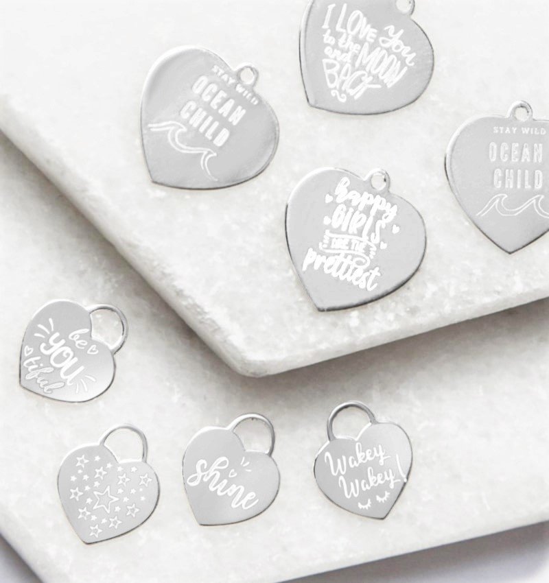 ♥ Select a text or letter for the back. This machine is the charm (black) engraved (in July 2016, there are also blank labels)