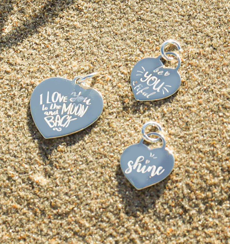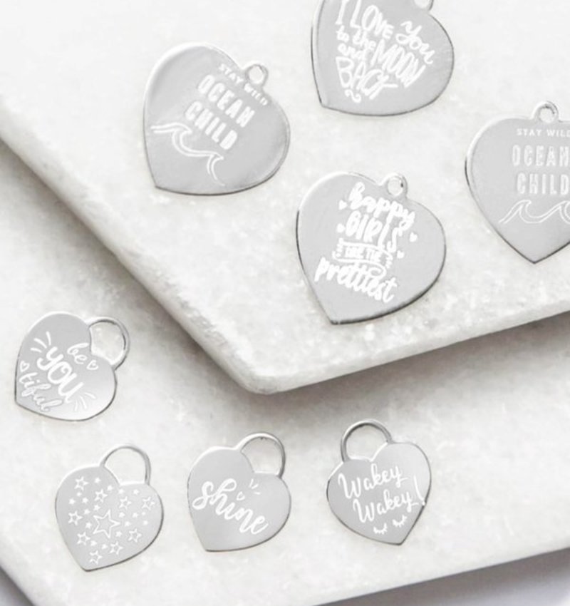 ♥ Select a text or letter for the back. This machine is the charm (black) engraved (in July 2016, there are also blank labels)