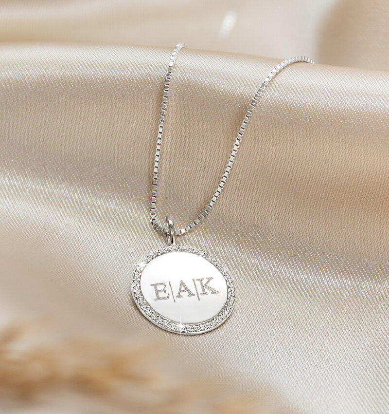 Who would you like to gift this personalized necklace to? This luxurious necklace is extra unique because of the disc with crystals!