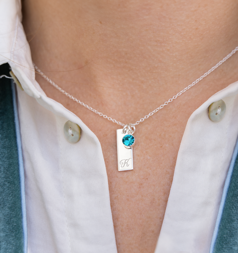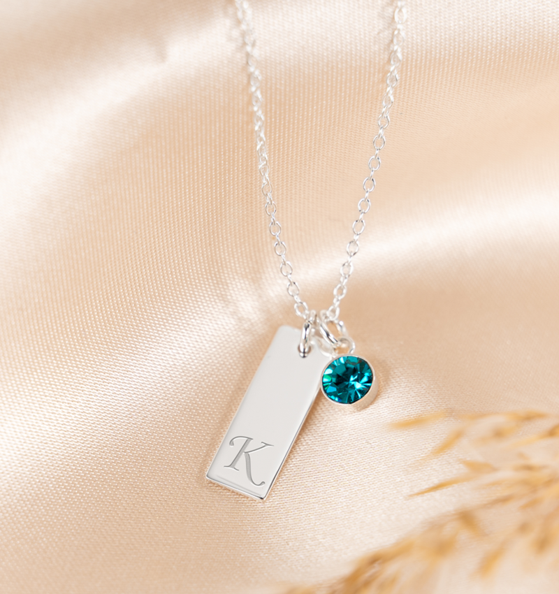 Superb .925 silver necklace with a engraving charm and Swarovski® birth crystals. We engrave an initial or number on the silver disc and finish it with a crystal that refers to the month of birth. Door-and-door .925 silver, forever beautiful.