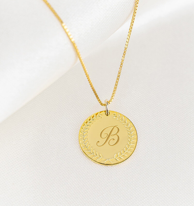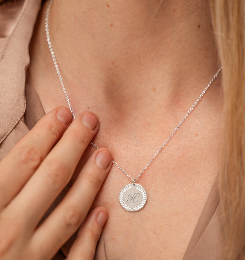 Superb .925 silver necklace with a engraving charm and Swarovski® birth crystals. We engrave an initial or number on the silver disc and finish it with a crystal that refers to the month of birth. Door-and-door .925 silver, forever beautiful.