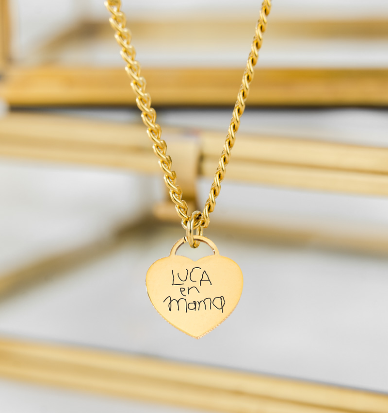 Capture your child's most beautiful work of art in this luxurious stainless steel necklace. This way you carry your child's love with you forever!
