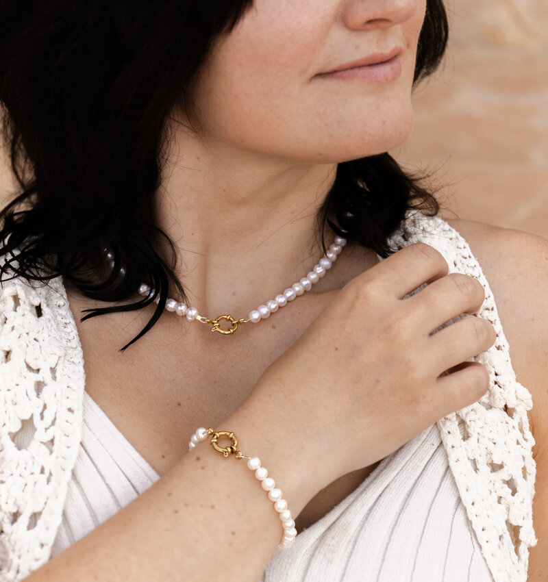 Pearl Bracelet with Large Clasp | Stainless Steel - Goud