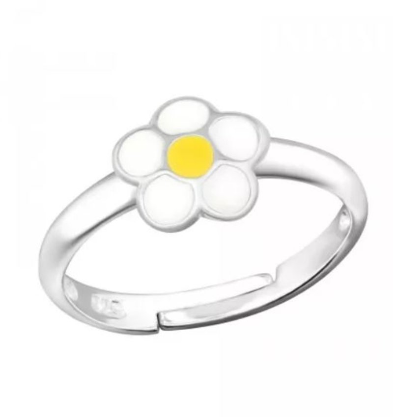 Beautiful ring made of white enamel with yellow dot! This daisy will make everyone shine.