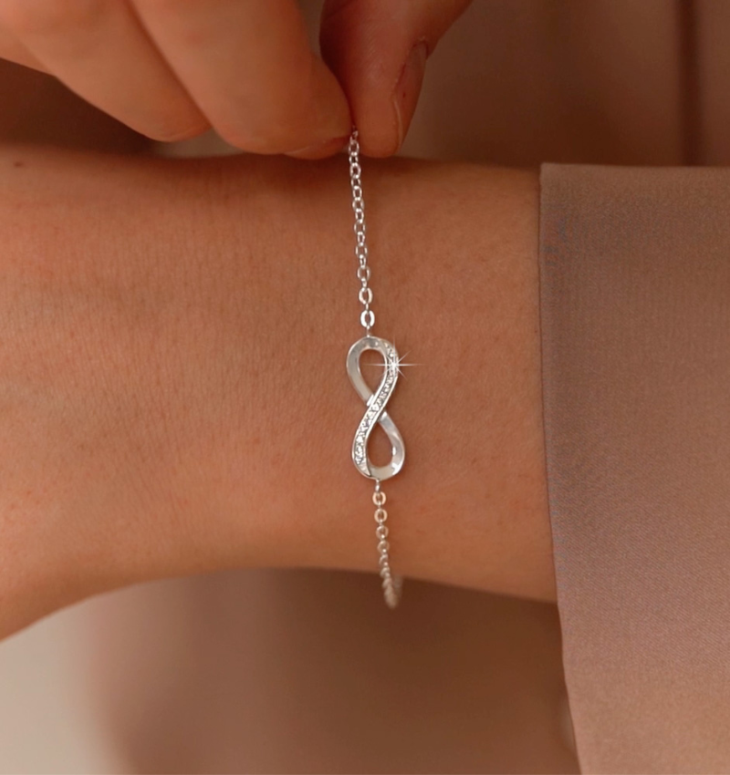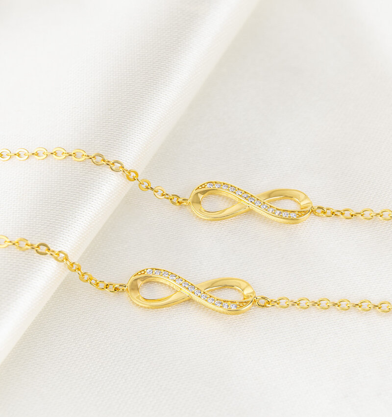 Beautiful set of three minimalist bracelets featuring an infinity symbol and crystals. The perfect gift to show your infinite love!
