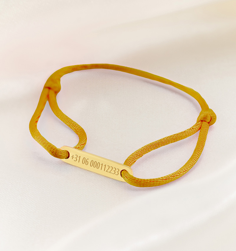 This bracelet with satin cord is both stylish and practical. Get your phone number engraved and give it to your kids as a gift. They'll think it's cool, you'll love it!