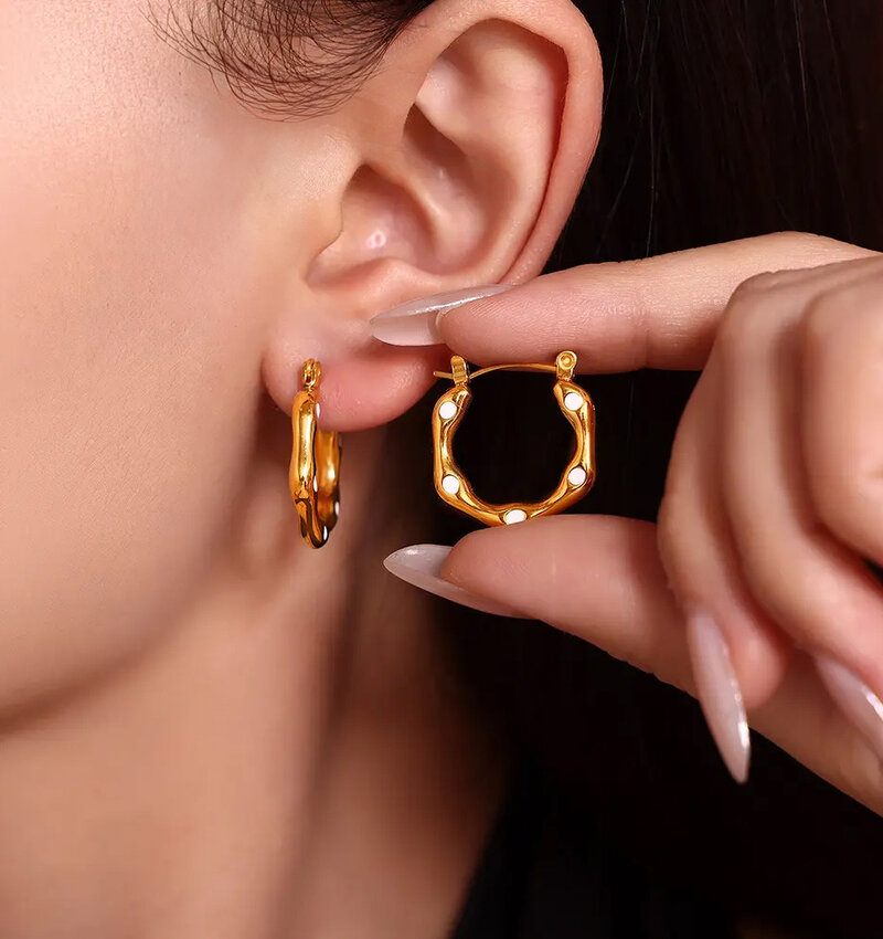Hoop earrings with pearls | Stainless Steel Gold - Gold