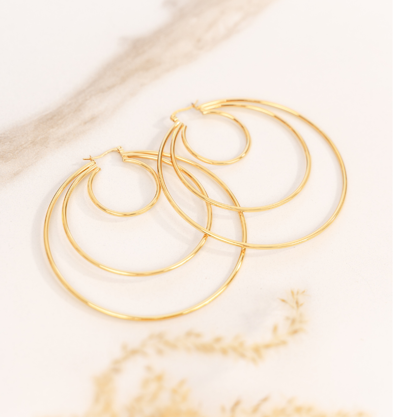 Add a bold touch to your look with these statement earrings. The design consists of three beautiful gold rings that are subtly connected to each other.