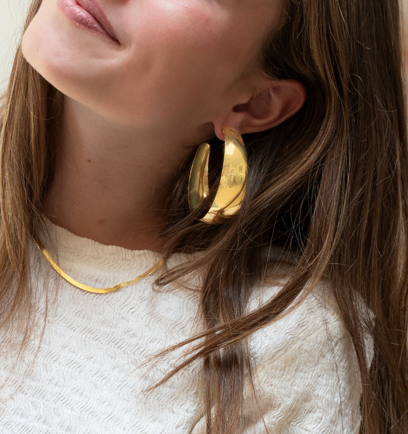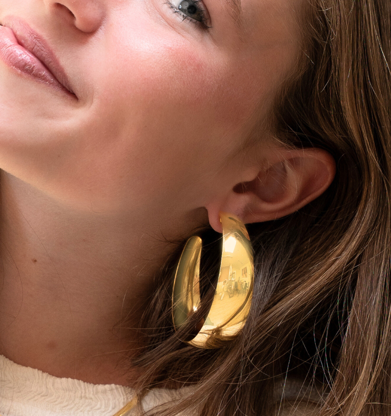 Statement Earrings 'Own It Baby' Large | Stainless Steel - Gold
