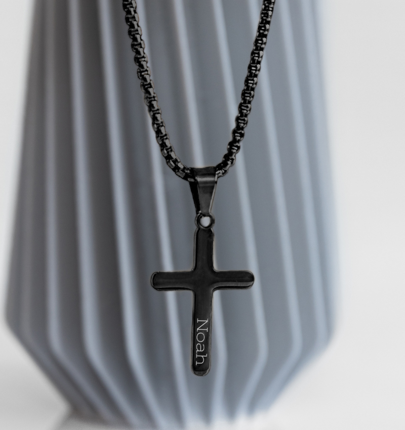 Steel Men's Cross Chain with Engraving | Black - Stainless steel