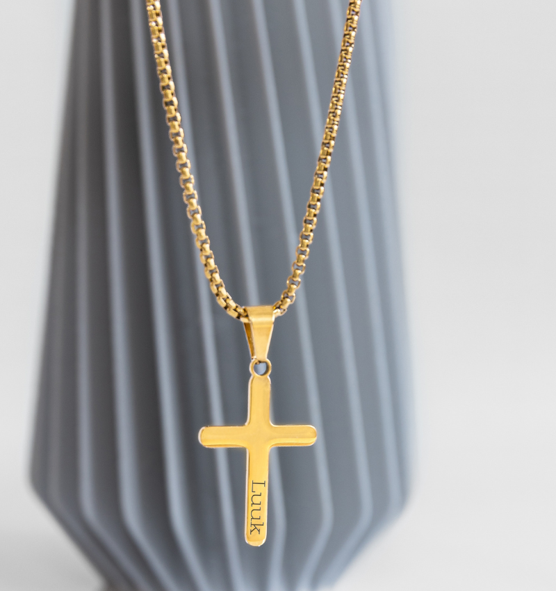 Steel Men's Cross Chain with Engraving | Gold - Stainless steel