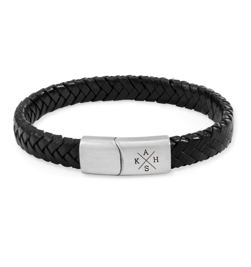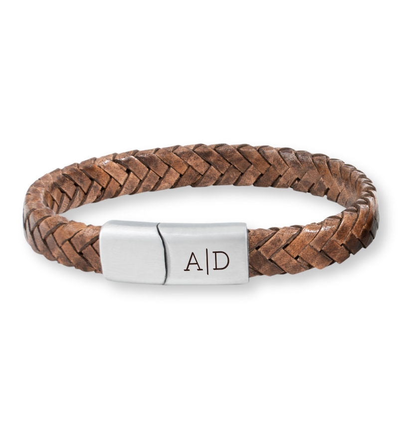 Braided leather men's bracelet with character. Have your initials engraved on the clasp for a personal and meaningful gift.