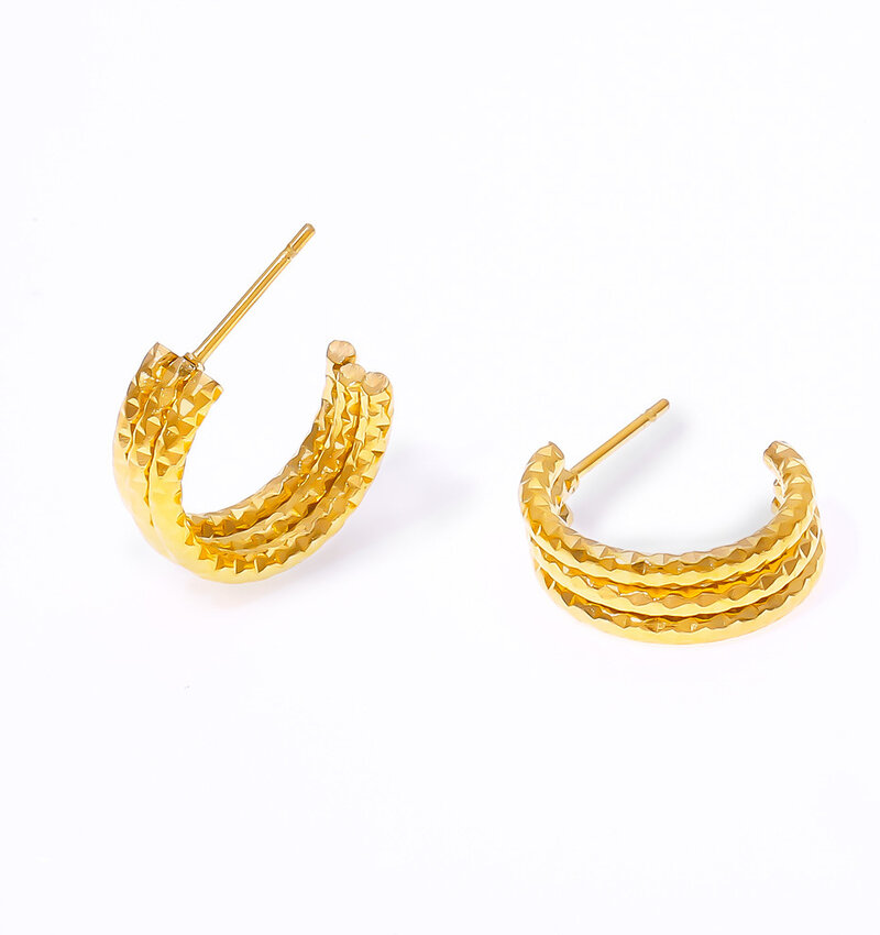 Open textured hoop earrings | Stainless Steel Gold - Gold