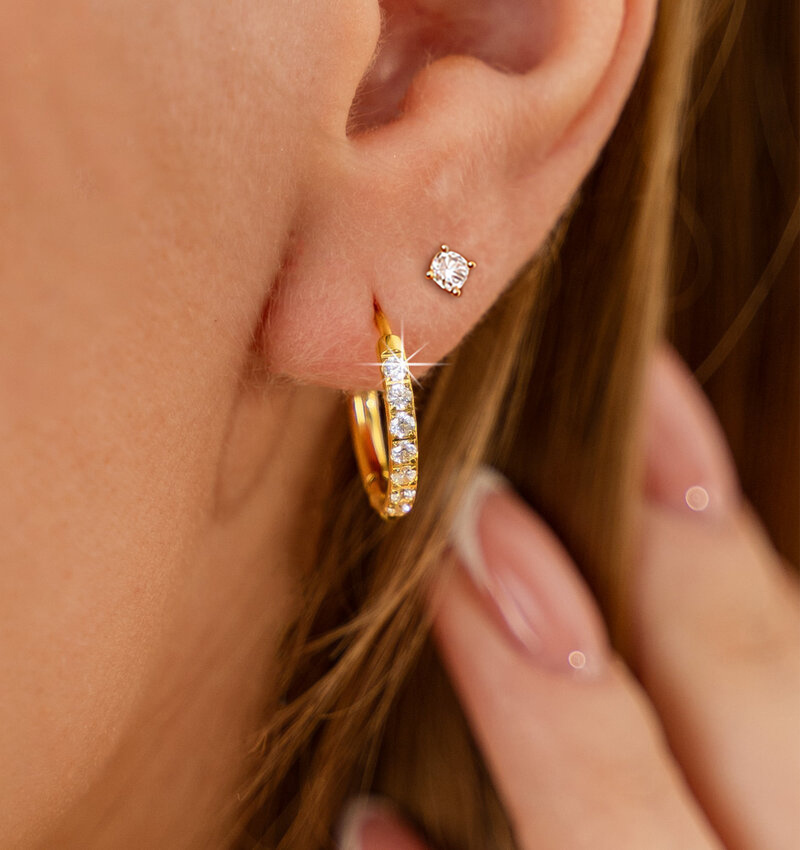 2-Piece Earring Set Shiny Crystal | Stainless Steel - Gold