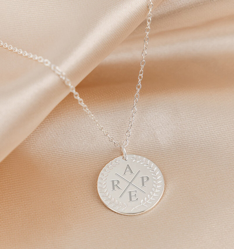 Superb .925 silver necklace with a engraving charm and Swarovski® birth crystals. We engrave an initial or number on the silver disc and finish it with a crystal that refers to the month of birth. Door-and-door .925 silver, forever beautiful.