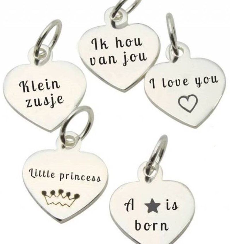 Make her jewelry extra special with a solid silver charm. You can receive the charm separately with a ring (for a necklace). Or we can attach it to a bracelet—the choice is yours. Very personal!