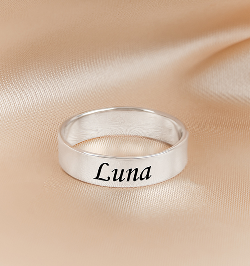A maximum of 35 characters can be engraved on the outside of the ring and 20 characters on the inside.