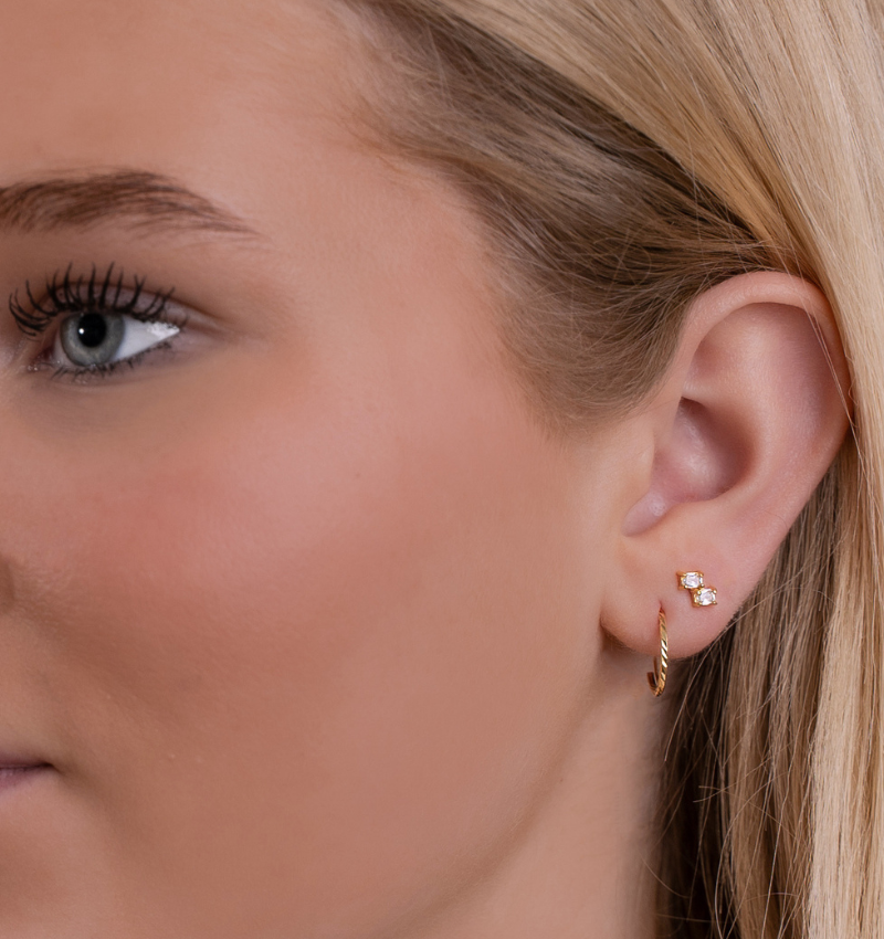 2 Delige Set Ooringen en Luxe Kristal Studs - Verguld