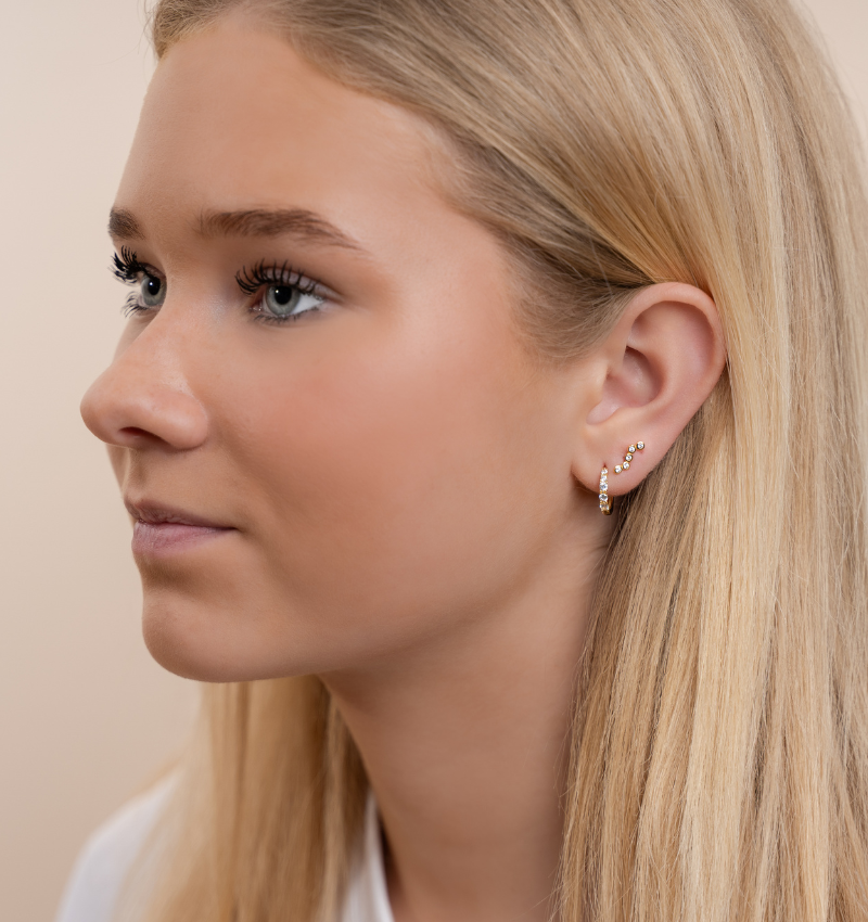 2 Delige Set Oorringen en Luxe Studs Wave - Verguld