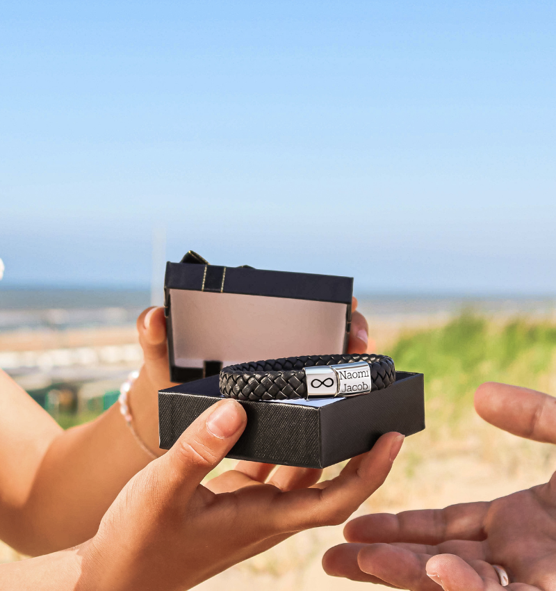 Drie stoere armbanden voor vader & 2 zonen. Of maak een 3 generatie set met opa, papa en kleinkind. Gemaakt van stevig PU leer en met gravure op de RVS sluiting helemaal speciaal.