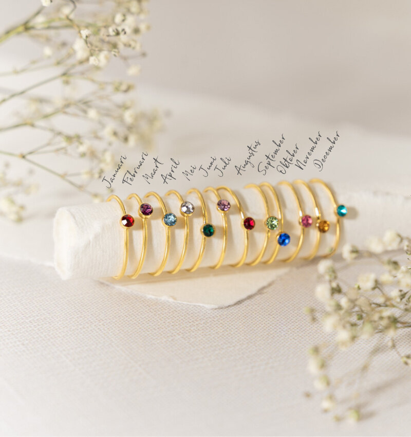 ♡ Voor dit sieraad gebruiken we zirconia kristallen waarvan de kleuren zijn geinspireerd op de oorsprokelijke edelstenen. Zo is Januari donkerrood, de kleur van Granaat.