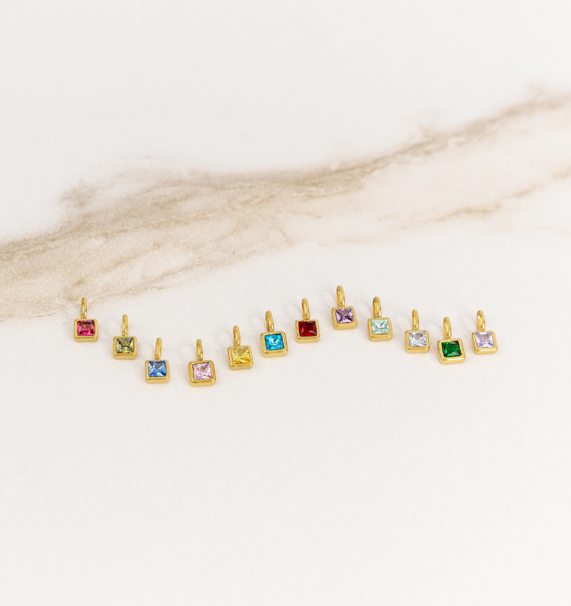 ♡ Voor dit sieraad gebruiken we zirconia kristallen waarvan de kleuren zijn geinspireerd op de oorspronkelijke edelstenen. Zo is Januari donkerrood, de kleur van Granaat.
