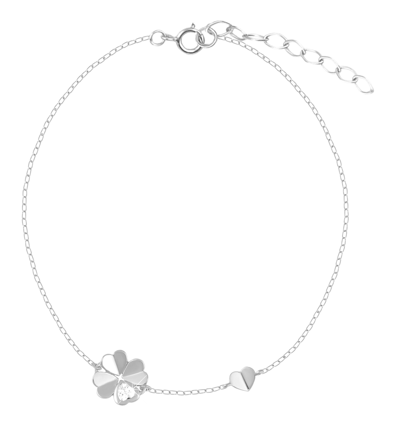 Luxe Armband Dames Klaver & Hartje met Kristal - 925 Sterling Zilver