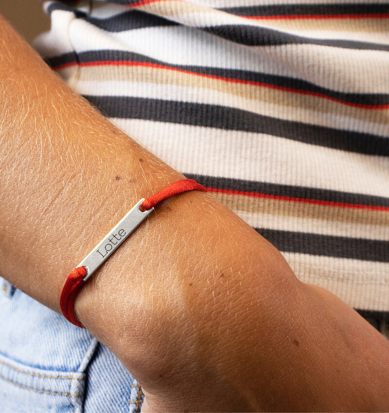 Satijnkoord armband met elegant graveerplaatje! Wat laat jij op deze dierbare armband graveren?