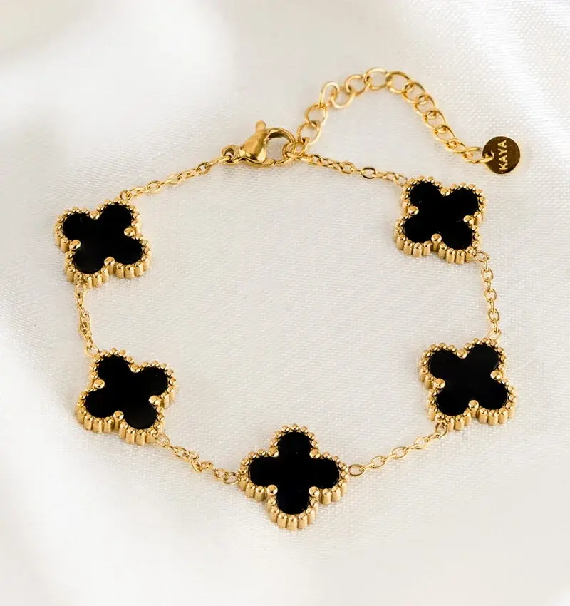 Armband en Oorbellen Set 'Klaver' Zwart - Goud