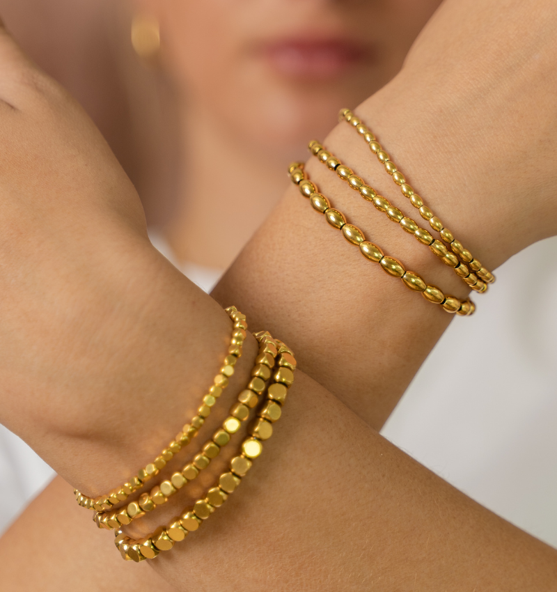 Mix & match met de Golden Blocks armbanden set – perfect voor elke gelegenheid.