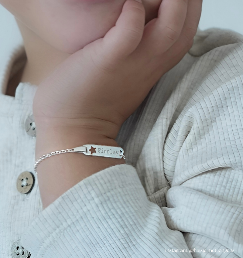 Gepersonaliseerde Baby armband met Naam 'Classic Bar' | Ster - Sterling Zilver