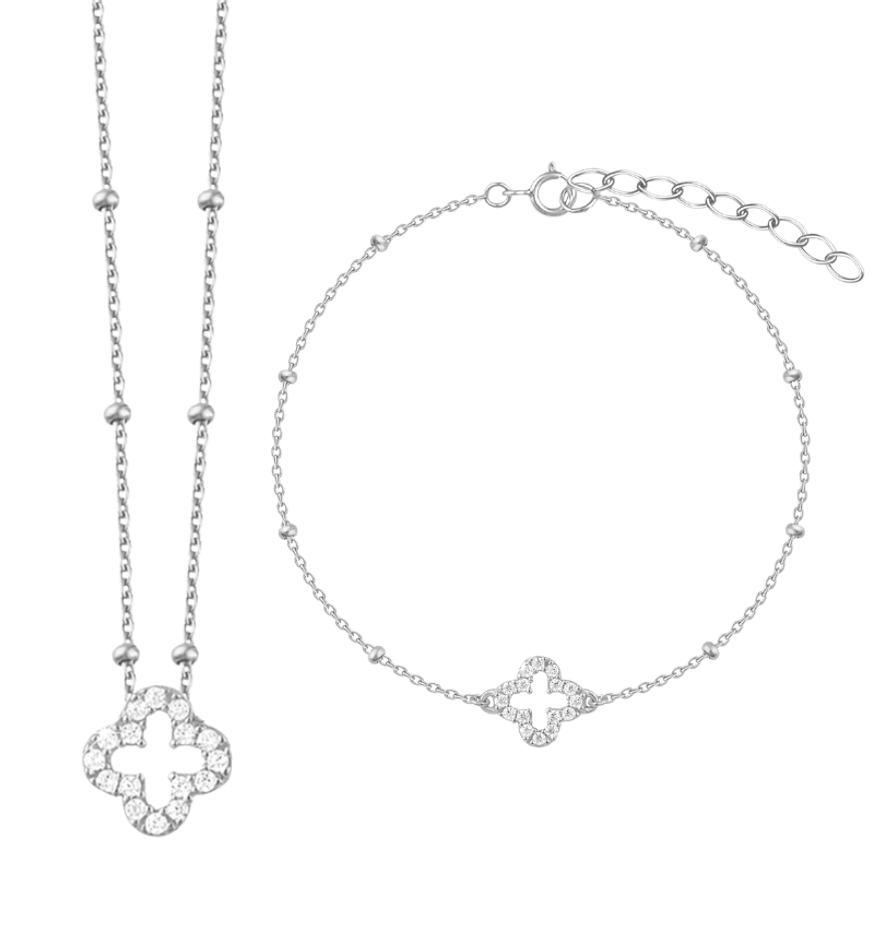 Bolletjes, klaver en kristal, draag het geluk dicht bij je hart. De perfecte set die past bij iedere outfit!