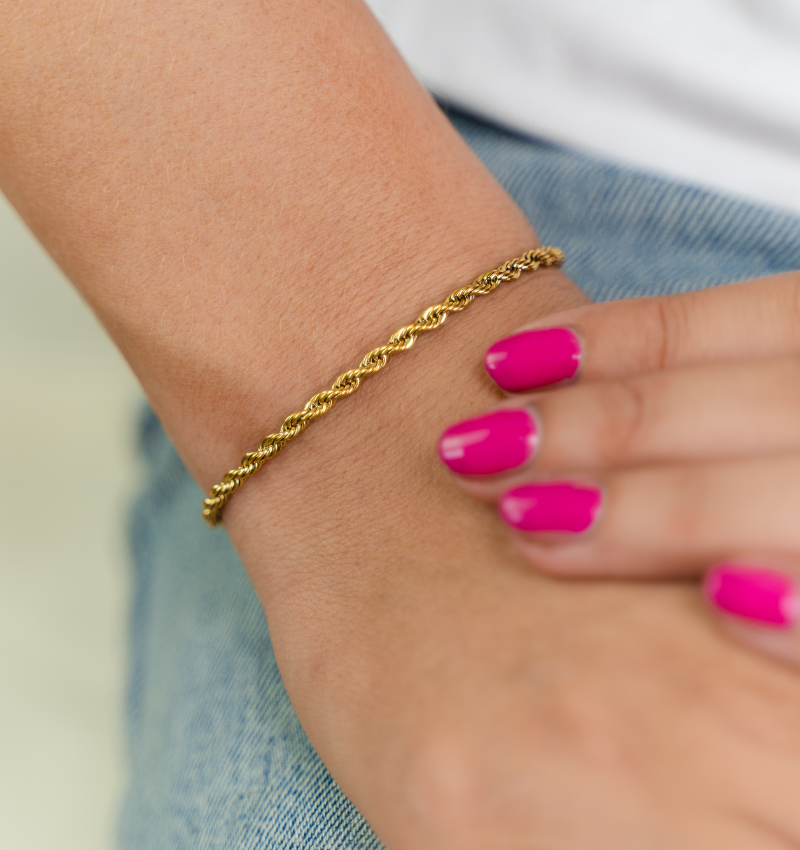 Minimalistisch met karakter – de 3 mm rope armband in goud maakt elke outfit af.