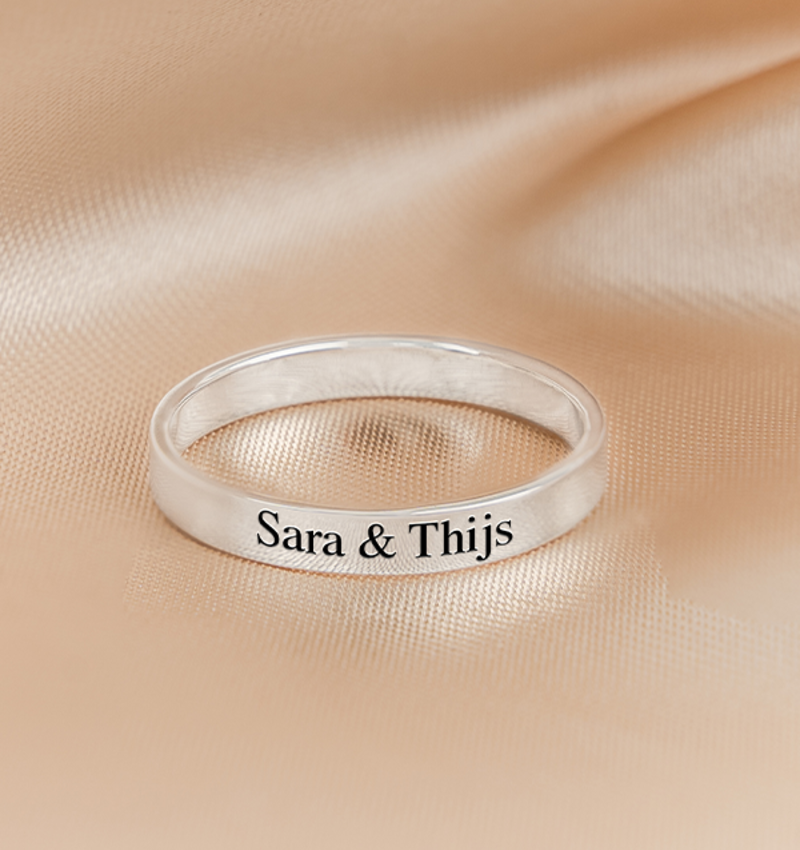 Draag een bijzondere tekst, een betekenisvolle datum of de naam van een geliefde altijd met je mee. De gravure wordt met liefde & precisie in de ring geplaatst.